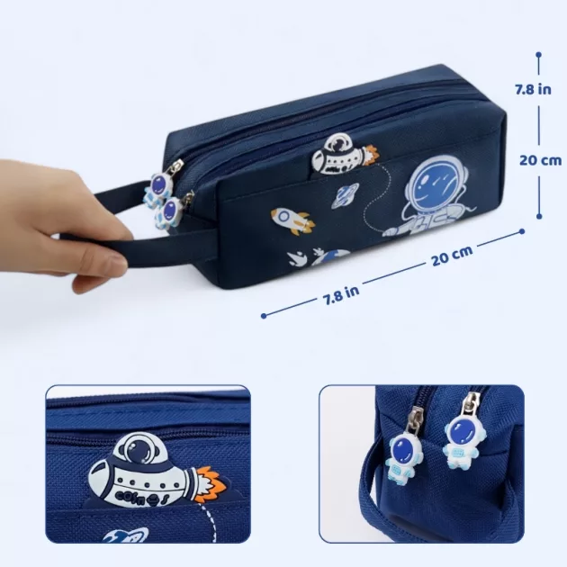 Mia figlia sorride ogni volta che apre il suo astuccio a tema spaziale. Niente più gomme perse. Le piace anche la cerniera robusta.