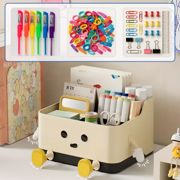 Design Divertente - Il viso carino e le caratteristiche giocose ispirano i bambini a riordinare. I sorrisi appaiono mentre il loro spazio creativo diventa accogliente e unico.
