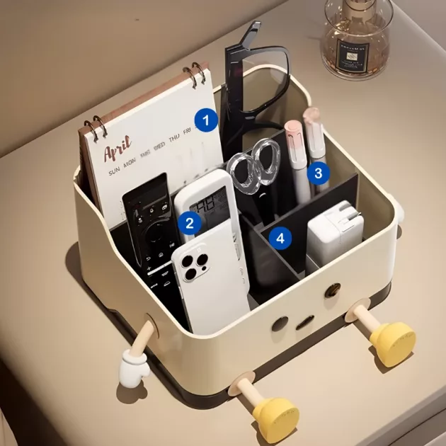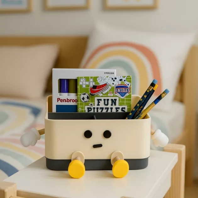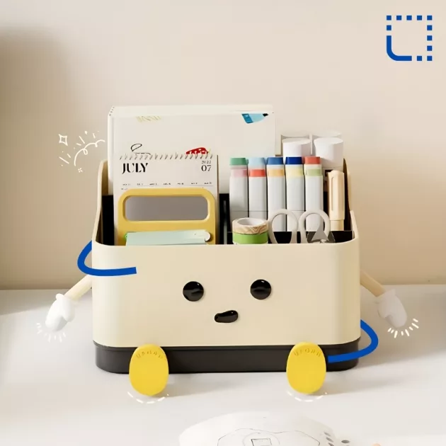 Questo organizzatore mi aiuta a trovare velocemente le mie cose per i compiti. Mi piace il design divertente ed è facile da pulire.