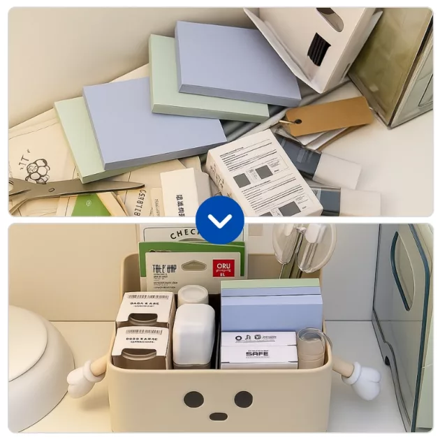 Adoro come appare la mia scrivania ora. La scatola è carina e non perdo più le mie penne. Fare i compiti è molto più veloce.