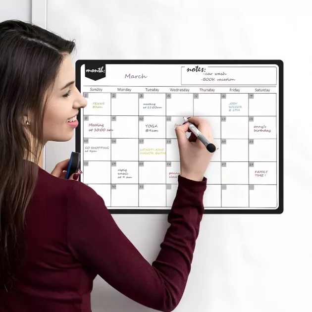 Tieni visibile il programma della tua famiglia con questo colorato planner mensile. L'ampio spazio permette di annotare tutte le attività dei tuoi figli, dagli eventi scolastici agli appuntamenti di gioco. Si pulisce facilmente e puoi aggiornare i piani quando cambiano. I magneti forti lo mantengono saldo sul frigorifero senza scivolare. Rendi le mattine più semplici sapendo cosa ti aspetta a colpo d'occhio.