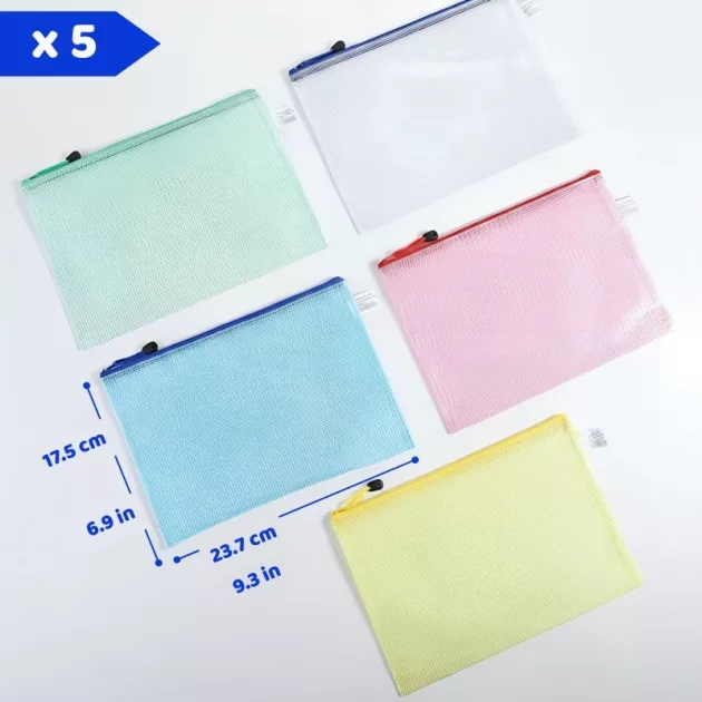 Uso questa busta a rete per i miei compiti e per il materiale artistico. I lati trasparenti mi aiutano a prendere quello che voglio velocemente. Non si strappa mai.
