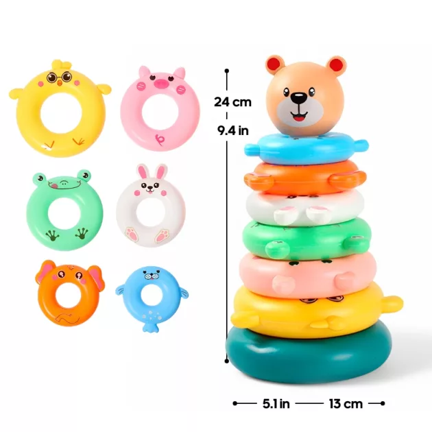 Colori bellissimi e animali carini lo rendono un successo! Mio figlio ride mentre impila e impara.