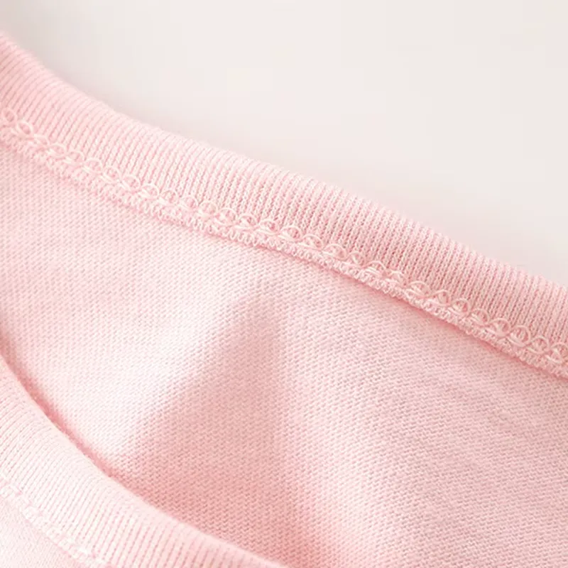Bella maglietta semplice! Mia figlia dice che non pizzica mai e può muoversi facilmente mentre gioca a rincorrersi al parco.