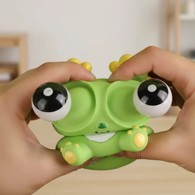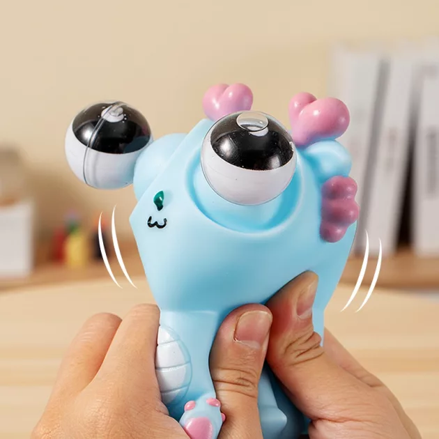 Il giocattolo da schiacciare mi fa sempre sorridere. Quegli occhi grandi buffi che saltano fuori sono la mia cosa preferita dopo una lunga giornata a scuola. È morbidissimo e mi tira sempre su il morale.