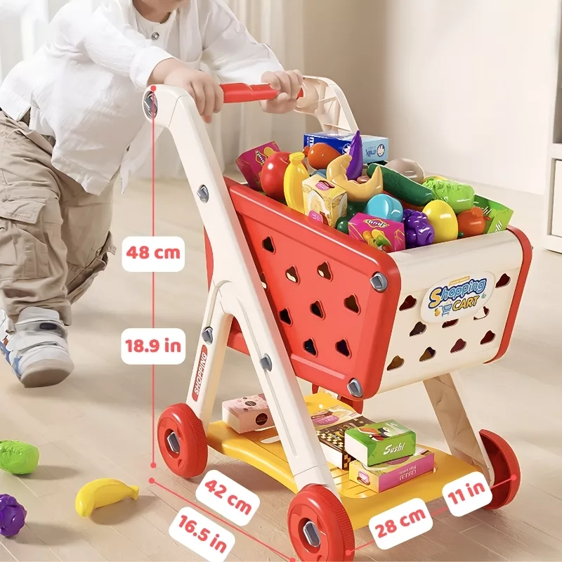Interazione sociale - Questo carrello della spesa giocattolo è perfetto per il gioco di ruolo con amici o familiari. I bambini possono interpretare sia gli acquirenti sia i negozianti, migliorando le loro abilità comunicative.