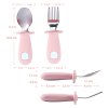 Adoro come il cucchiaio e la forchetta siano leggeri ma robusti. Le maniglie morbide in silicone li rendono comodi per la presa del mio bambino.
