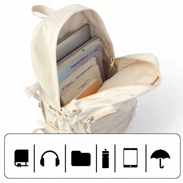 Trovo sempre un posto per il mio pranzo, astuccio e libro della biblioteca. Niente si schiaccia più sul fondo.