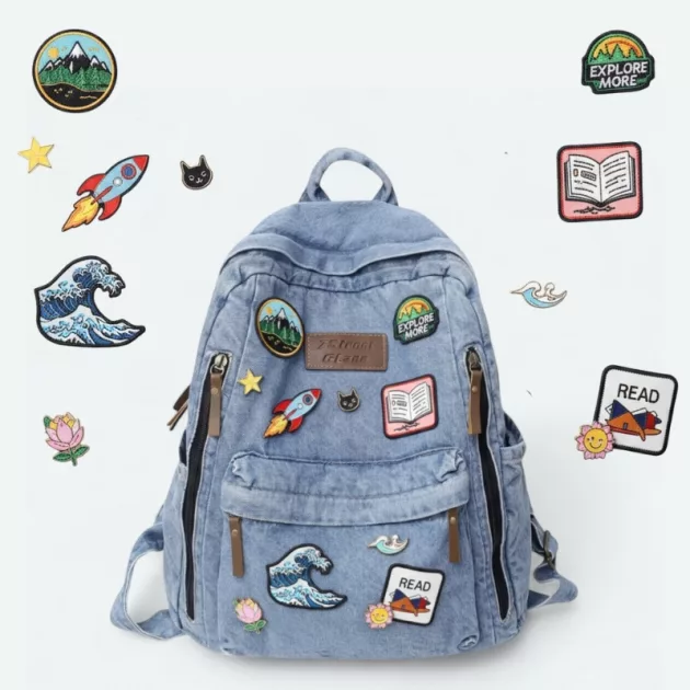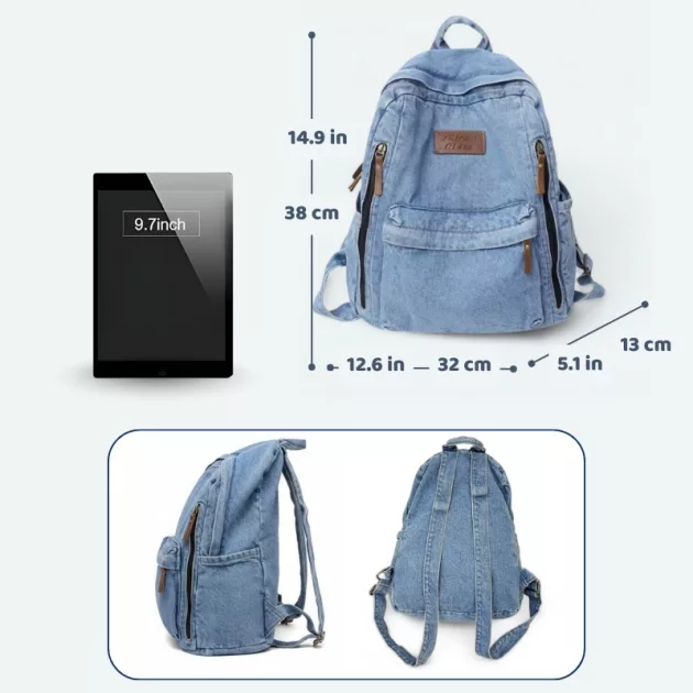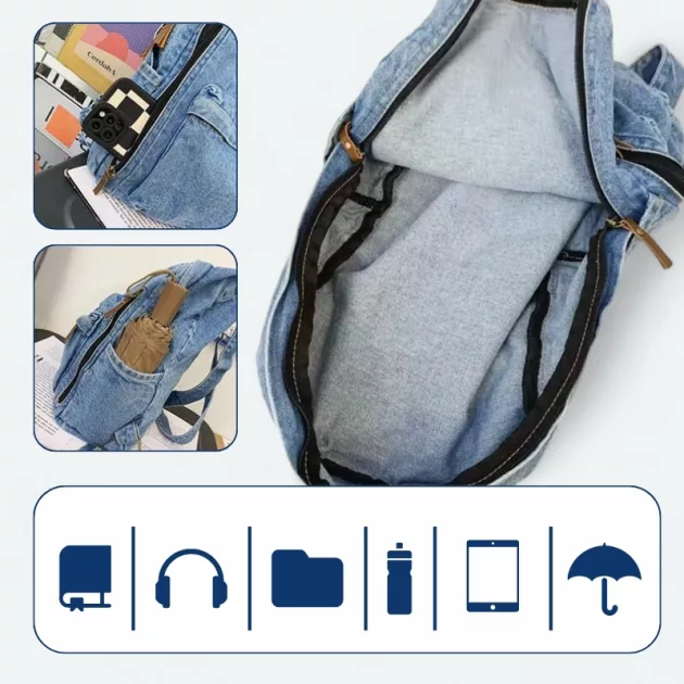 Questa borsa di jeans è fantastica per la scuola! stanno tutti i miei libri pesanti, le matite e la mia lunch box con spazio avanzato. Mi sento davvero cool usarla.