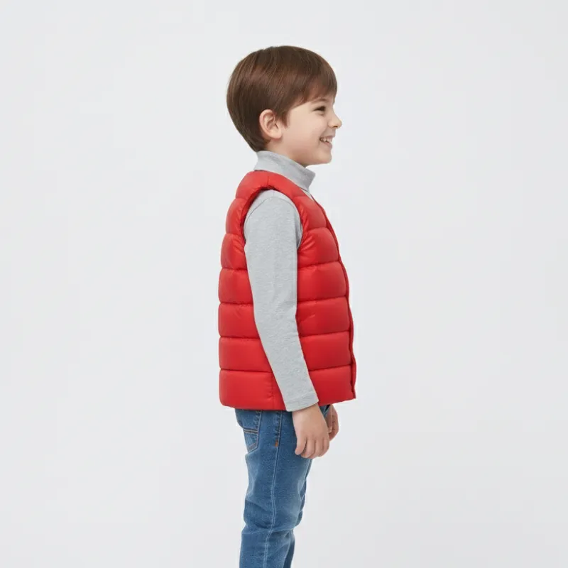 Mio figlio indossa il suo piumino ogni mattina e adora il colore vivace. Lo tiene al caldo senza farlo sentire appesantito. Lo usa anche al parco giochi.