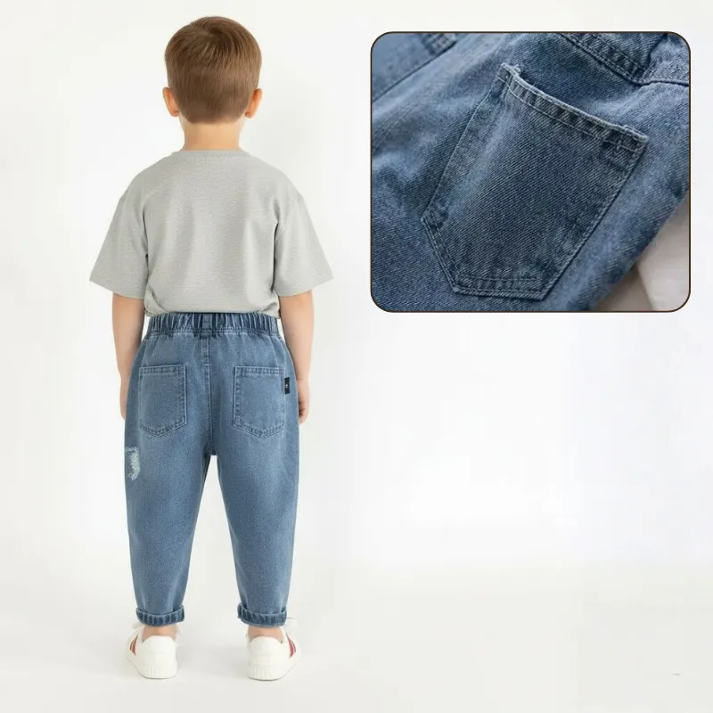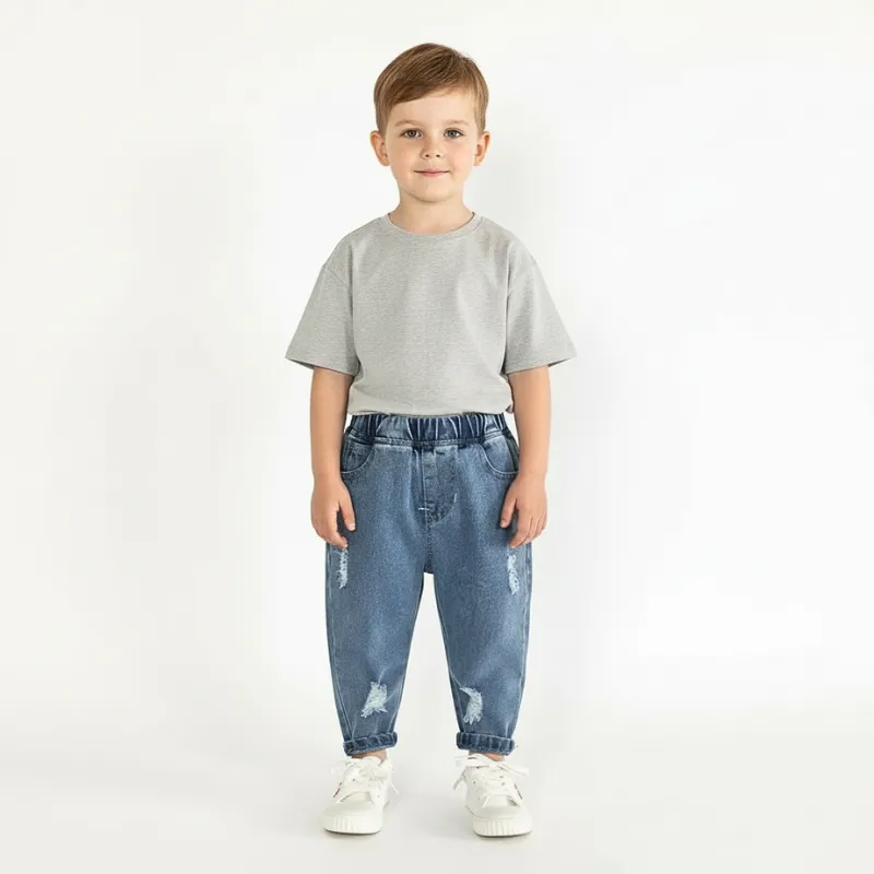 Jeans Larghi Strappati Stile Cargo per Bambini