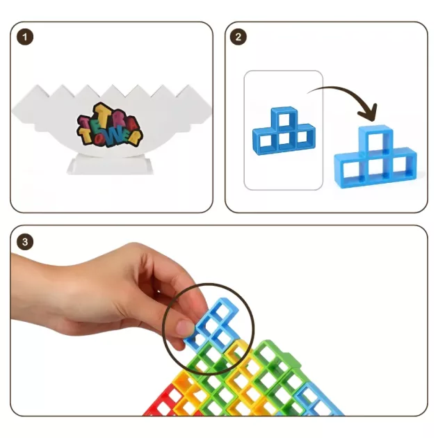 Blocchi dai colori vivaci attirano subito l'attenzione e stimolano il pensiero creativo. I giochi di impilamento aiutano la concentrazione e incoraggiano ogni giocatore a rimanere calmo. Le risate riempiono la stanza mentre le famiglie condividono momenti gioiosi e ricordi. I pezzi in plastica sono sicuri, facili da pulire e non si scheggiano mai durante l'uso.