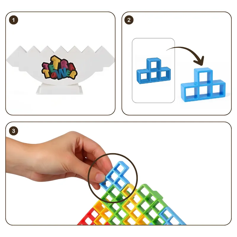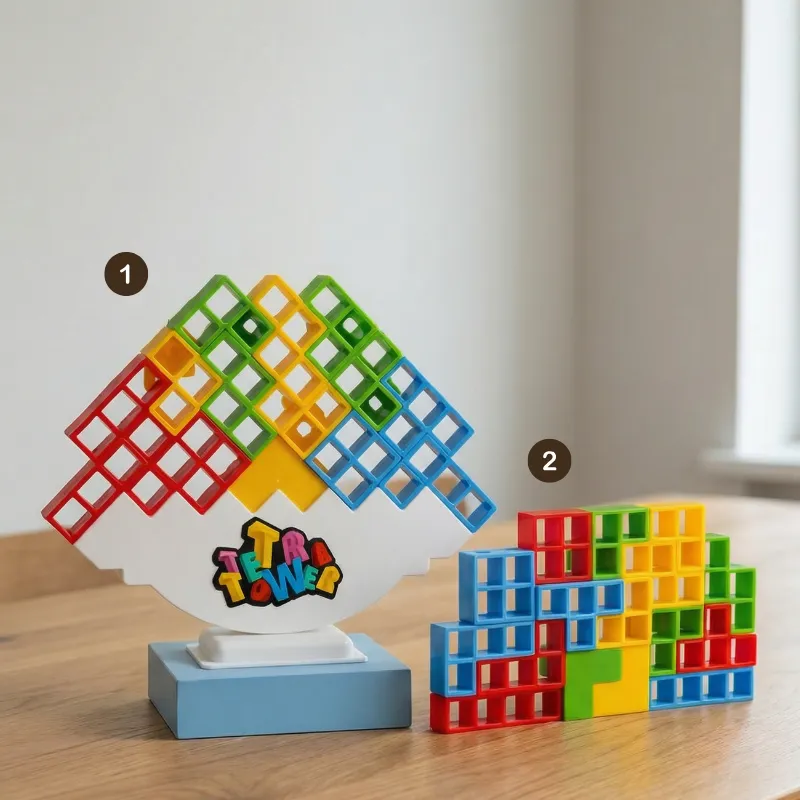 Blocchi dai colori vivaci attirano subito l'attenzione e stimolano il pensiero creativo. I giochi di impilamento aiutano la concentrazione e incoraggiano ogni giocatore a rimanere calmo. Le risate riempiono la stanza mentre le famiglie condividono momenti gioiosi e ricordi. I pezzi in plastica sono sicuri, facili da pulire e non si scheggiano mai durante l'uso.