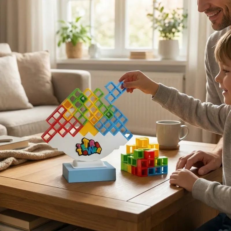 La nostra famiglia si diverte un sacco con questo gioco di impilamento! I blocchi colorati spiccano davvero e i bambini adorano collaborare per non far cadere la torre.