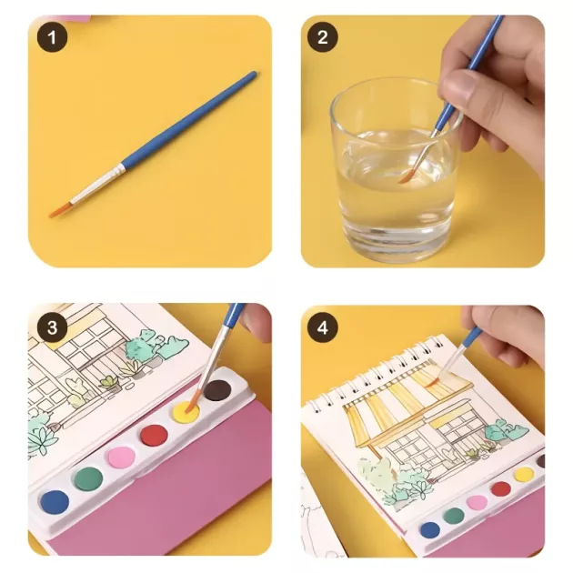 Scene colorate invitano i giovani artisti a rilassarsi dopo giornate impegnative. I genitori guadagnano momenti di serenità mentre i bambini si concentrano su delicate pennellate. Tutto ciò che serve è riposto ordinatamente in un robusto supporto compatto. Niente disordine, solo vivaci disegni che si asciugano rapidamente su pagine di qualità.