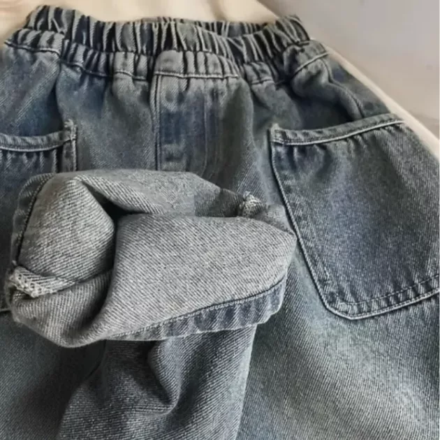 Pantaloni cargo in denim di cotone a gamba larga per bambini