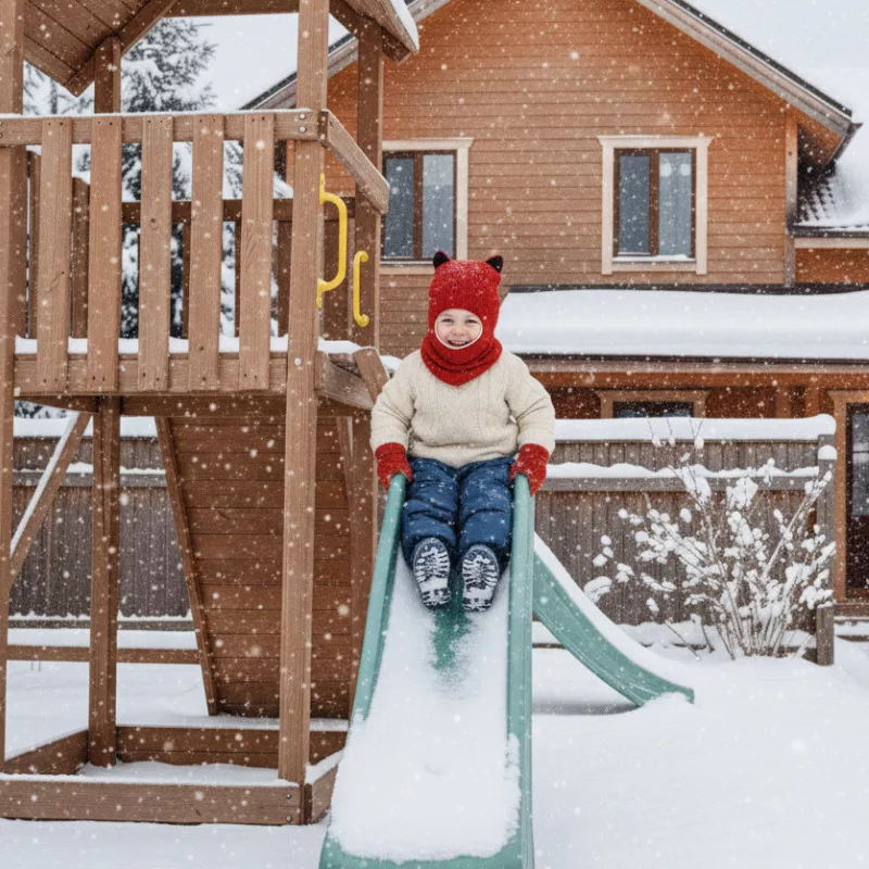 Il freddo preoccupa ogni genitore ogni anno. Questo passamontagna lavorato a maglia garantisce che visi e colli restino al caldo all'aperto. I dettagli con orecchie rendono ogni avventura divertente e giocosa.