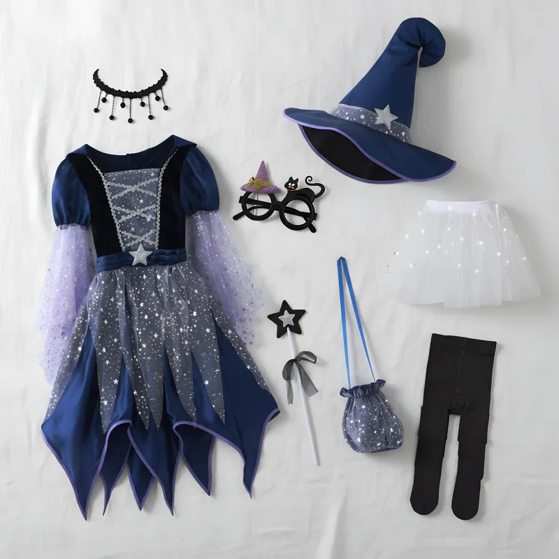 Dona a tuo figlio la sicurezza per brillare ad ogni festa. Dettagli scintillanti e colori vivaci rendono il travestimento ancora più speciale. Facile da indossare con tessuto morbido per un gioco felice tutto il giorno. Ogni set include un cappello abbinato, una bacchetta magica e una pratica borsa.