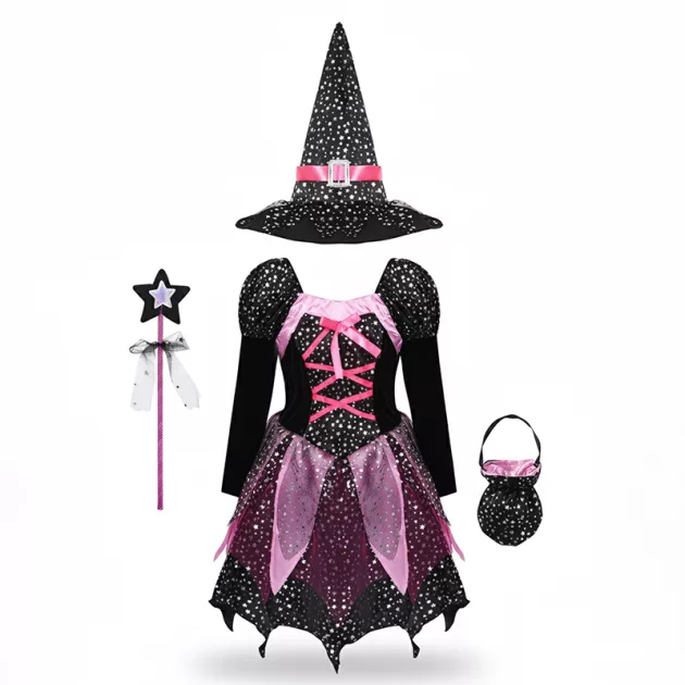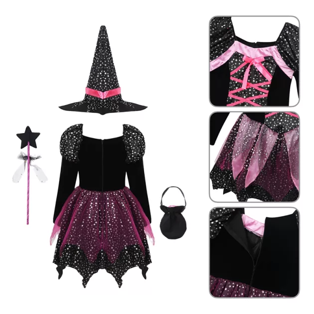 Sono molto felice di questo vestito! Cappello e bacchetta abbinati perfettamente. Mia figlia andava in giro a lanciare incantesimi ai suoi amici, ridendo per tutto il tempo.