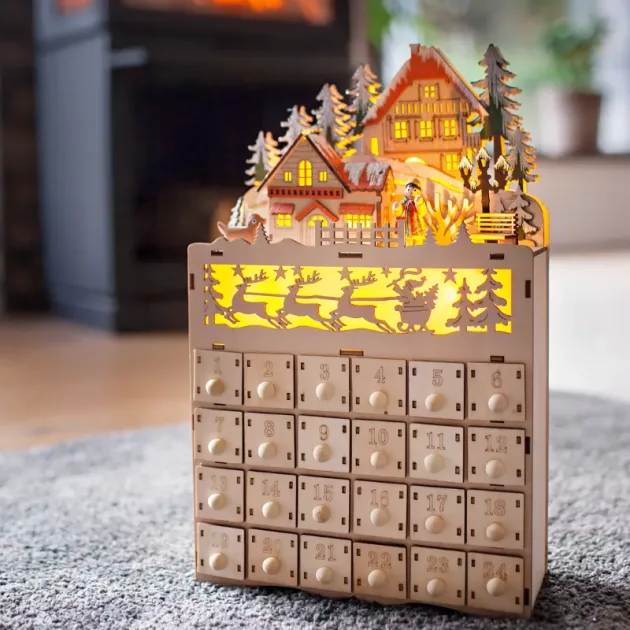 Questo calendario in legno è la mia decorazione preferita. È solido e le luci soffuse rendono il soggiorno perfetto per Natale.
