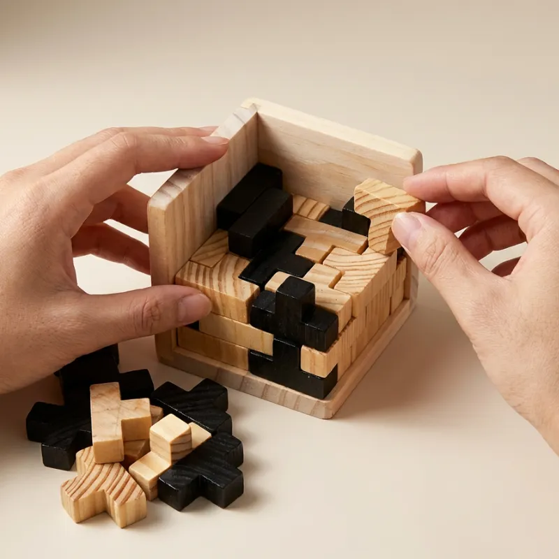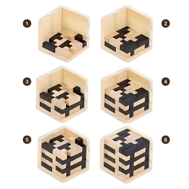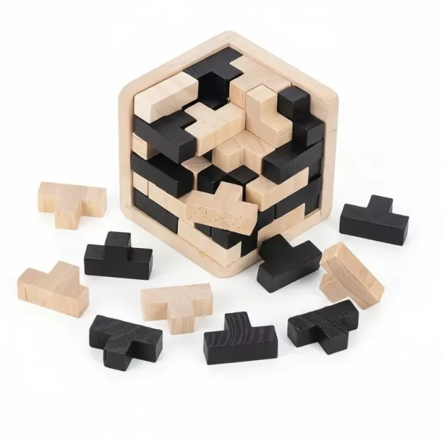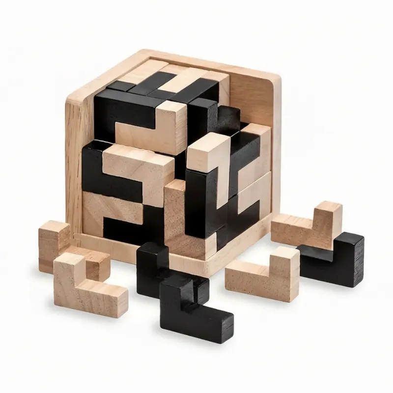 wooden cube puzzle, interlocking cube puzzle, wood block cube puzzle