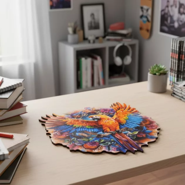 Mettere insieme questo puzzle con mio fratello più piccolo è stato così divertente. Abbiamo riso tanto e adesso abbiamo un pappagallo fantastico da mostrare.