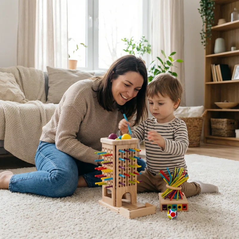 I bambini amano affrontare nuoveide e i giochi amichevoli scatenano risate. Questo gioco della torre di bastoncini in legno incoraggia la concentrazione e le mani attente a ogni turno. Ogni mossa porta allegria colorata, invitando al lavoro di squadra e alla sana competizione. Rendete i momenti di apprendimento semplici per le famiglie a casa.